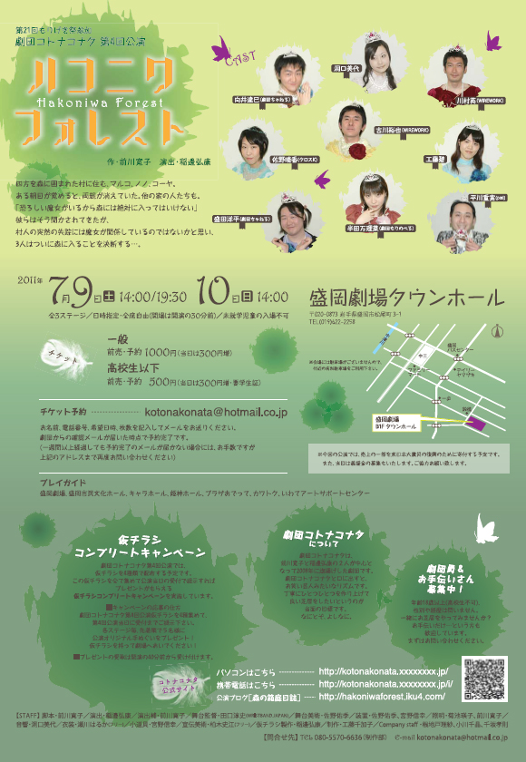 ※今回の公演の売り上げの一部を東日本大震災の復興の為に寄付する予定です。 また、当日の受付では義援金の募集も致します。ご協力お願いいたします。