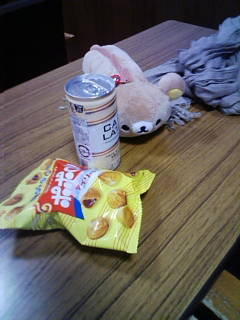こんさんが衣装用の布地を裁断しながら、おやつをくれましたのでパシャリ。