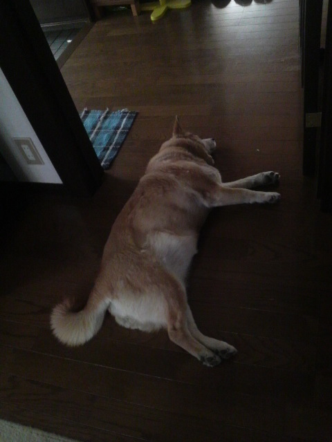 写真は暑くて伸びてるうちのわんこ。そんなところにいると踏まれるよ~